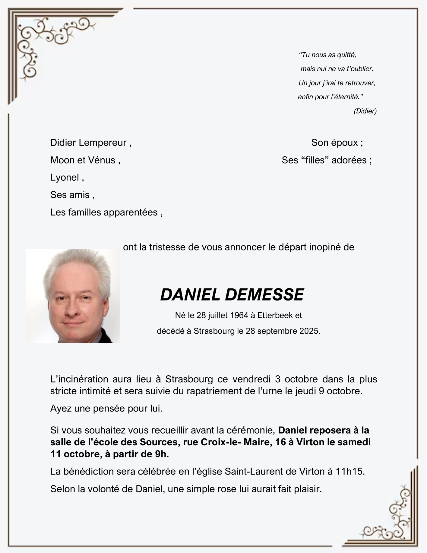 Fallecido en Strasbourg (67000, Francia) el domingo, 28 de septiembre de 2025 a la edad de 61 años