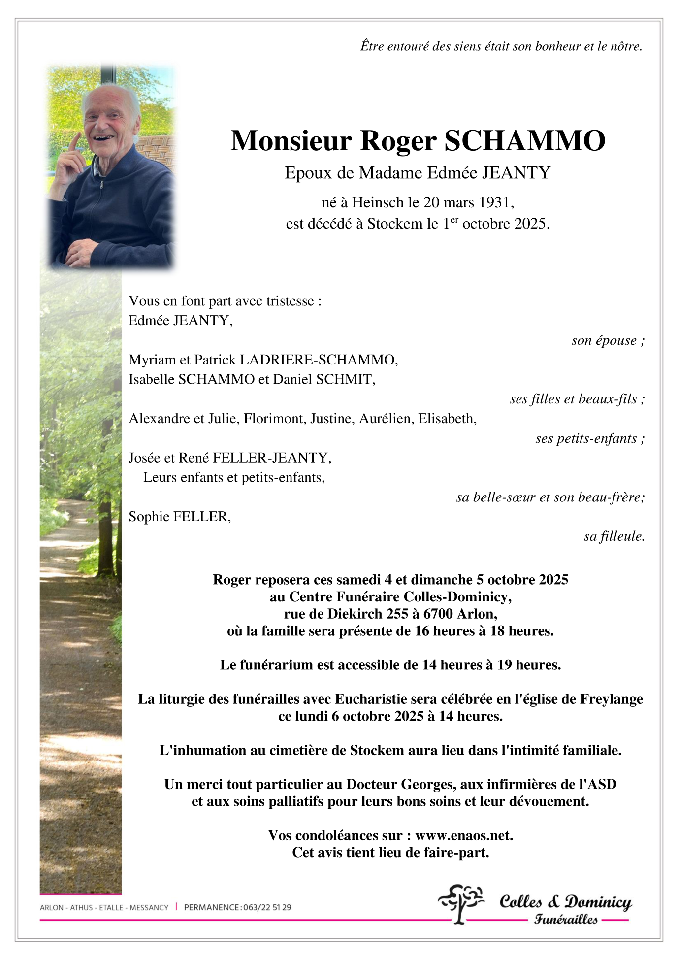 Décédé à Stockem (6700) le mercredi 1 octobre 2025 à l'âge de 94 ans
