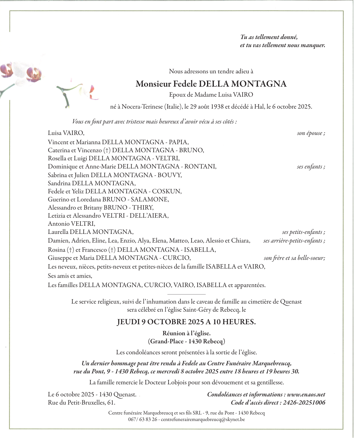 Décédé à Halle (1500) le lundi 6 octobre 2025 à l'âge de 87 ans