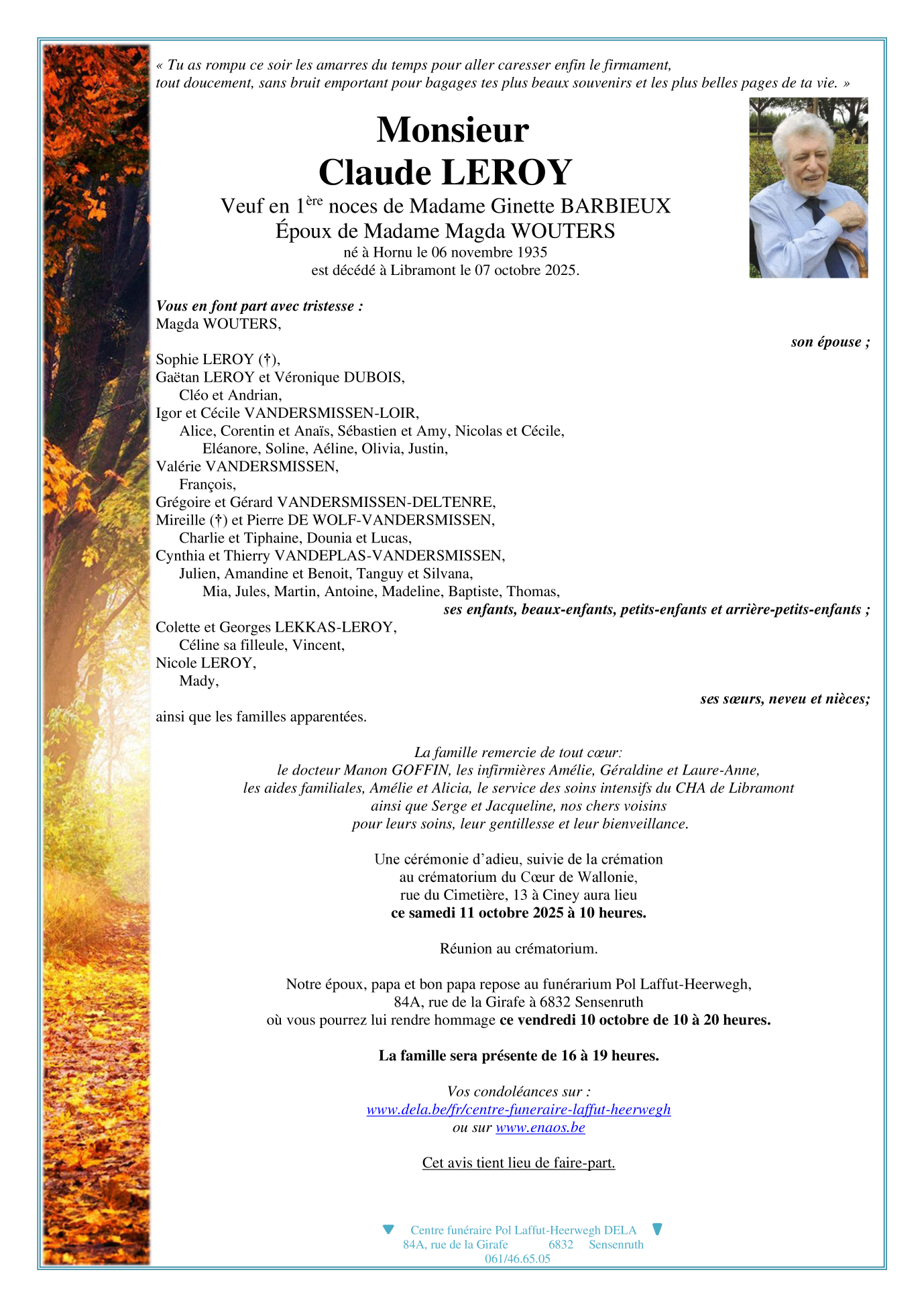 Décédé à Libramont-Chevigny (6800) le mardi 7 octobre 2025 à l'âge de 89 ans