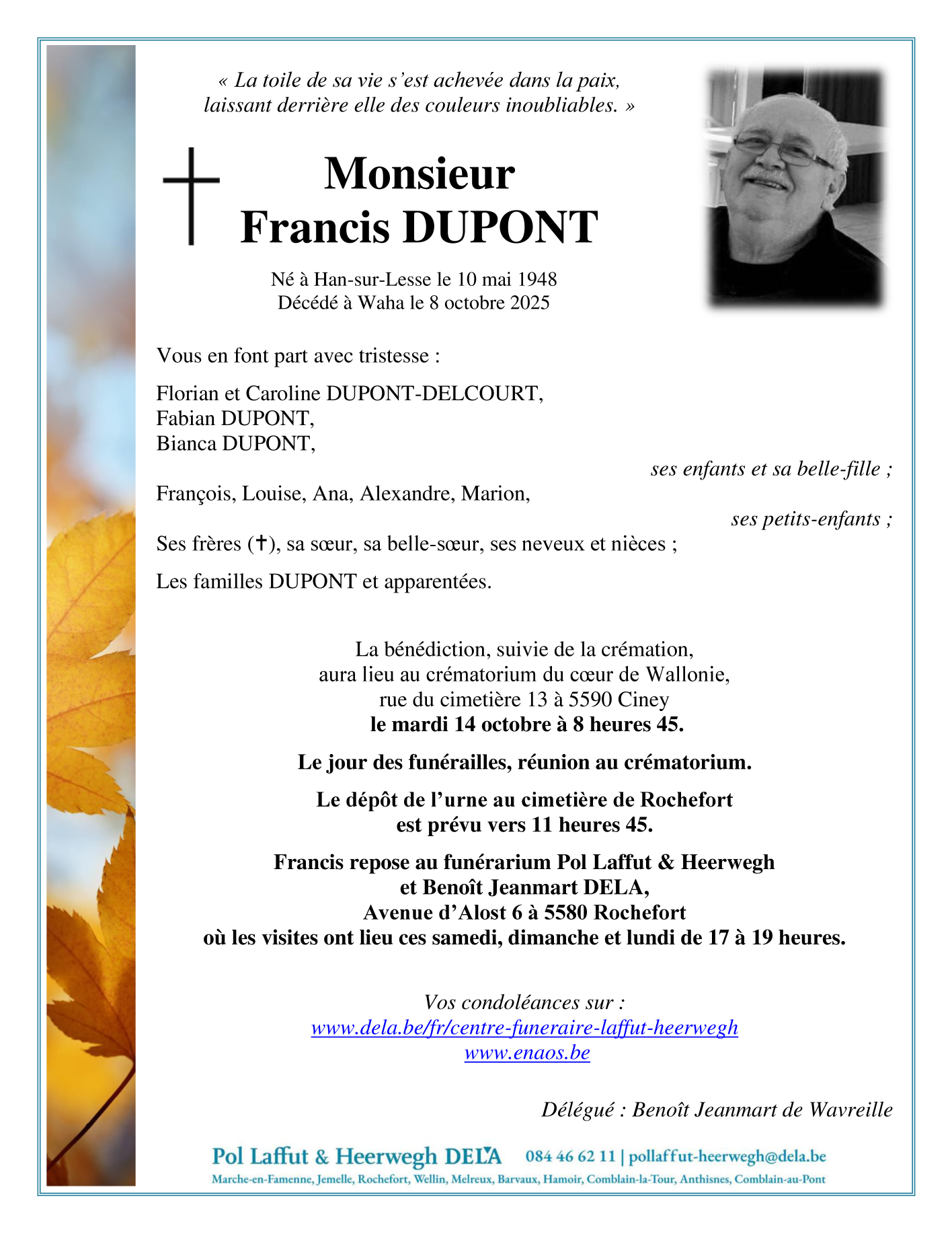Overleden te Waha (6900) op woensdag 8 oktober 2025 op 77-jarige leeftijd