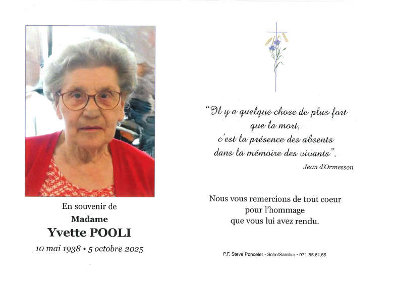 Décédée à Erquelinnes (6560) le dimanche 5 octobre 2025 à l'âge de 87 ans