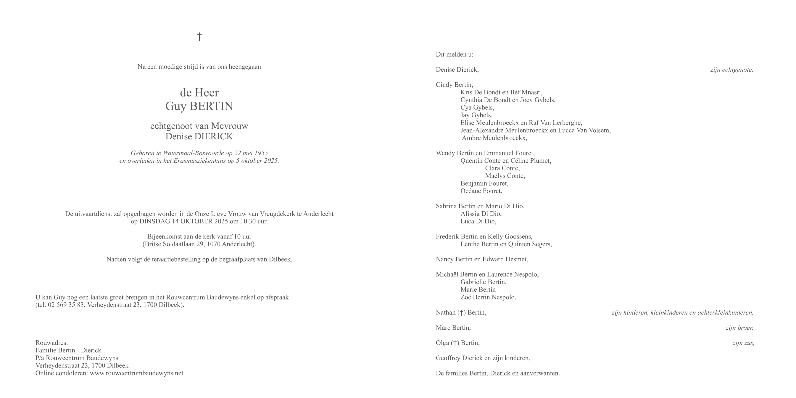Décédé à Anderlecht (1070) le dimanche 5 octobre 2025 à l'âge de 70 ans