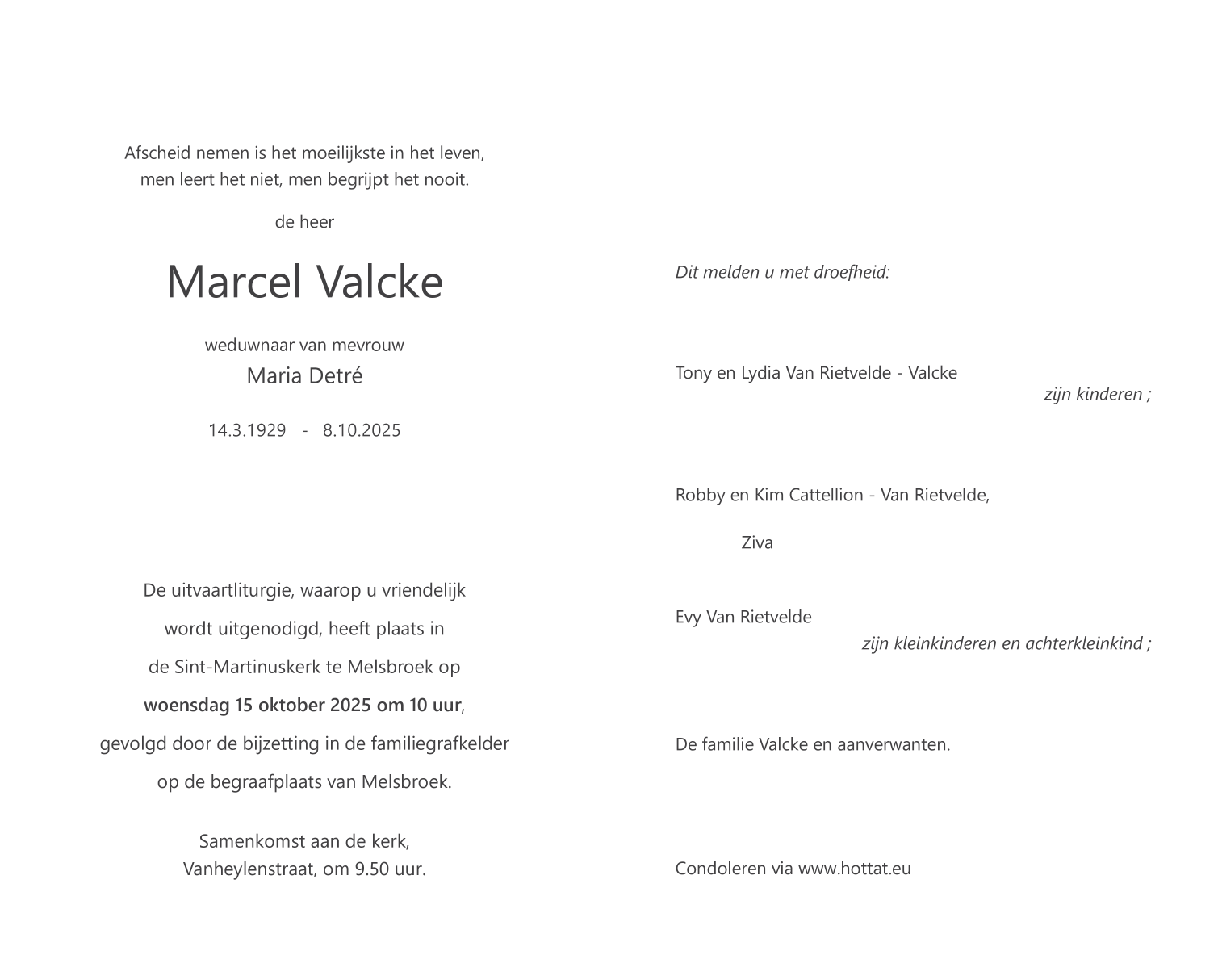 Fallecido en Melsbroek (1820) el miércoles, 8 de octubre de 2025 a la edad de 96 años