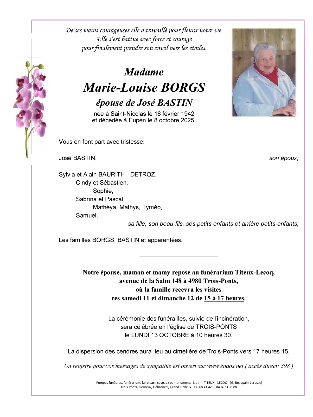 Epouse de Monsieur José BASTIN