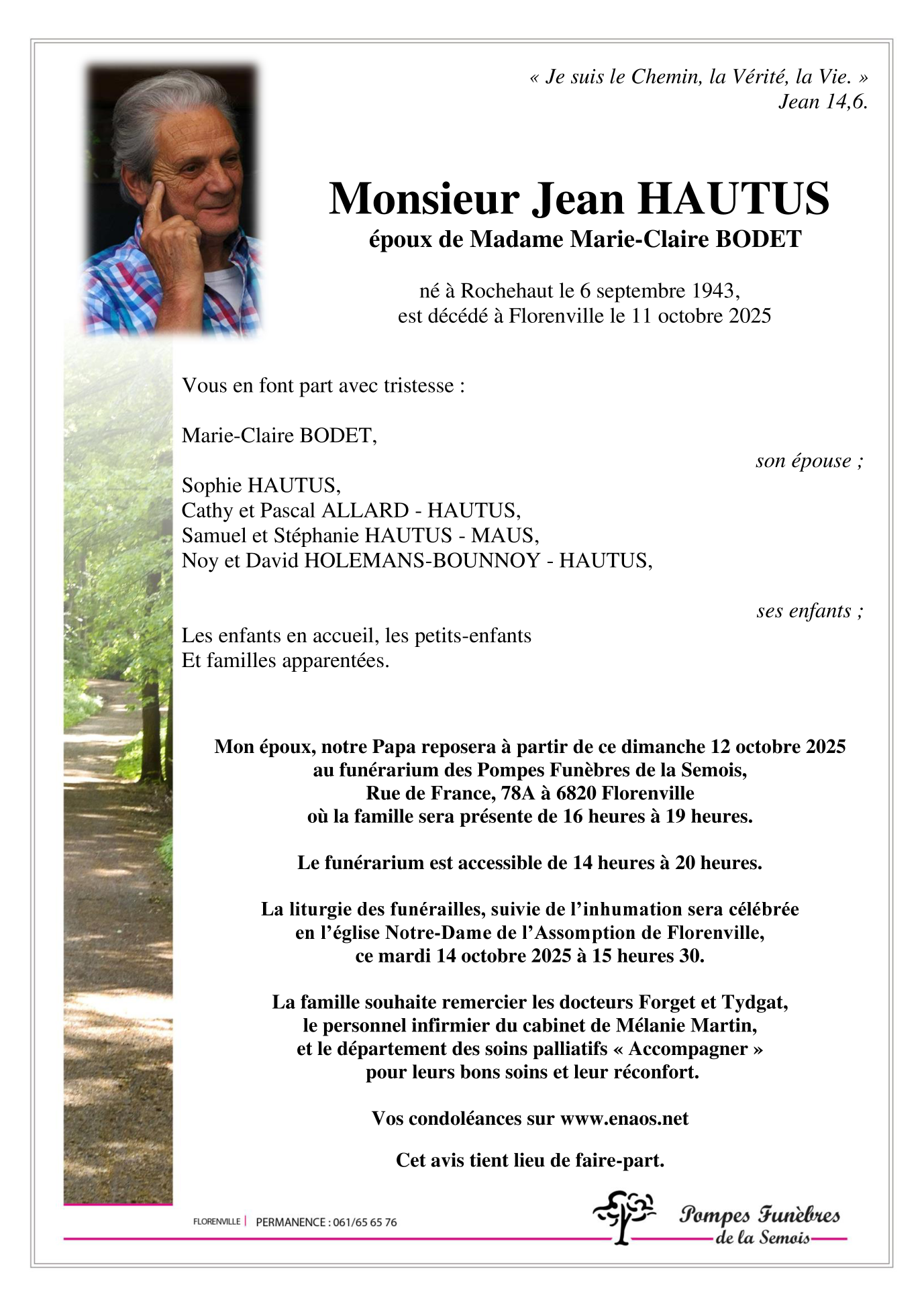 Décédé à Florenville (6820) le samedi 11 octobre 2025 à l'âge de 82 ans