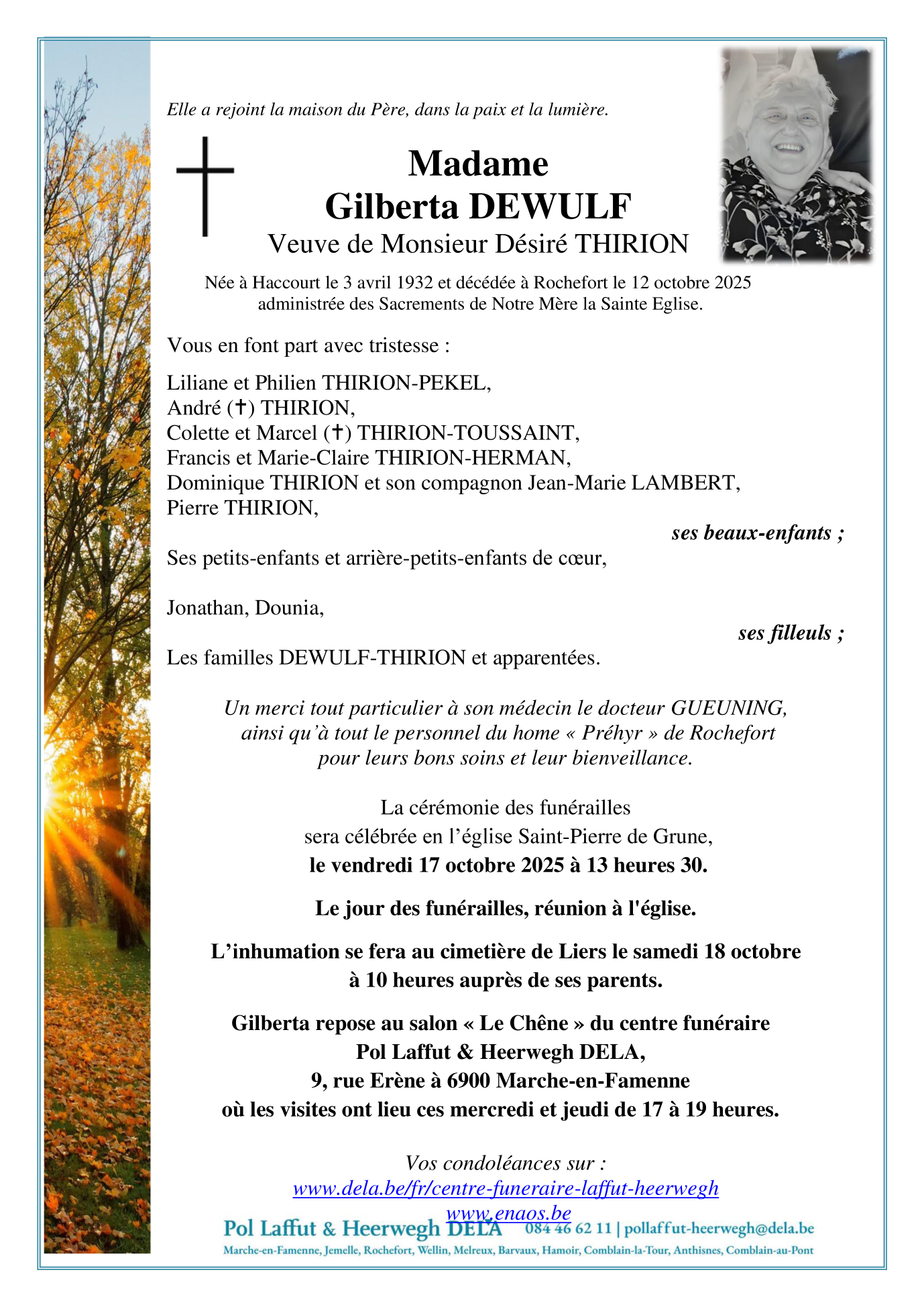 Décédée à Rochefort (5580) le dimanche 12 octobre 2025 à l'âge de 93 ans