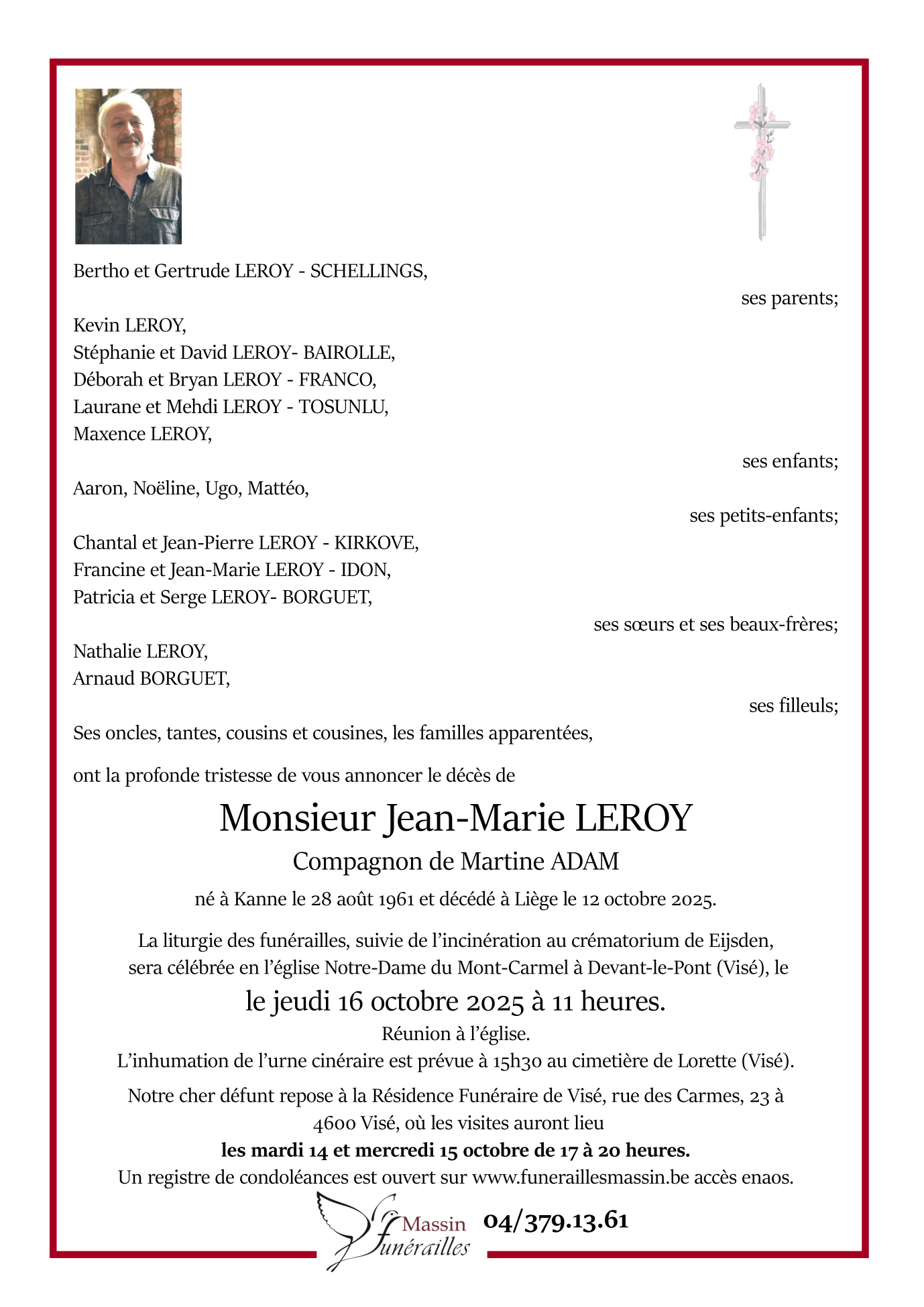 Décédé à Liège (4000) le dimanche 12 octobre 2025 à l'âge de 64 ans