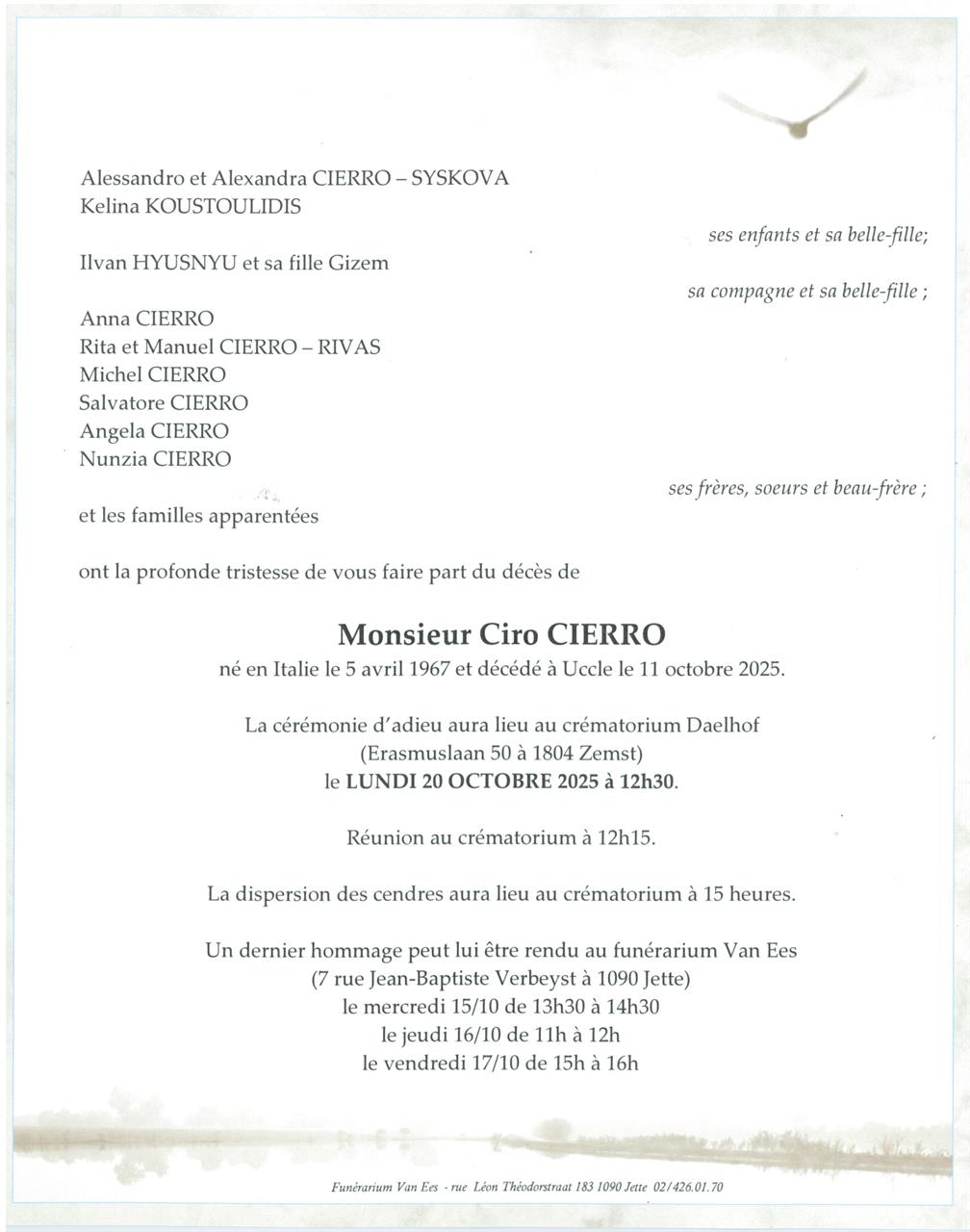Décédé à Uccle (1180) le samedi 11 octobre 2025 à l'âge de 58 ans