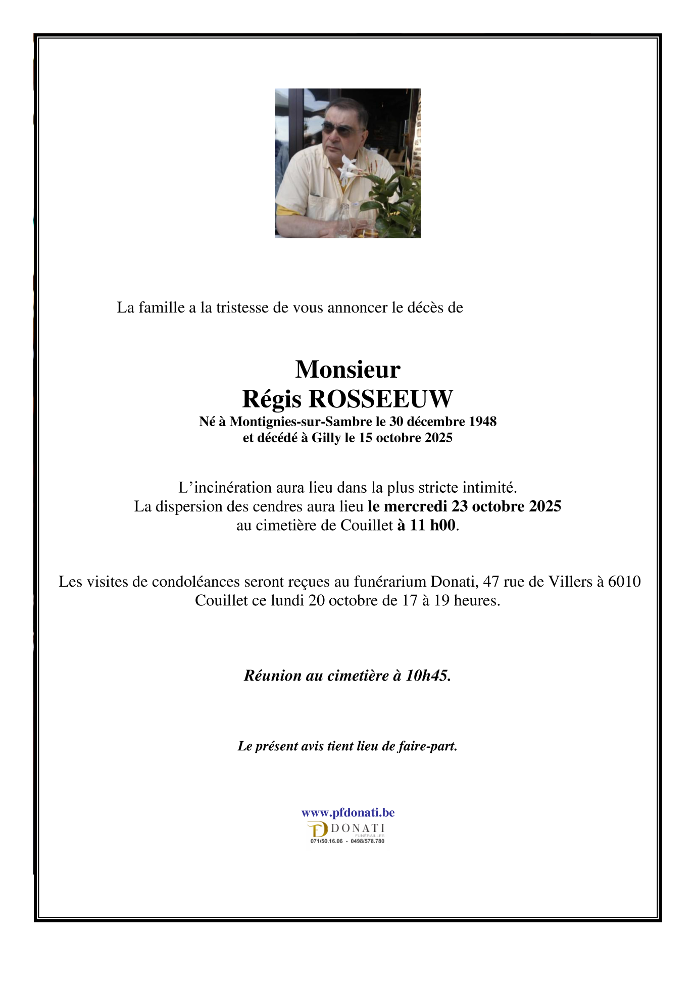 Fallecido en Gilly (6060) el miércoles, 15 de octubre de 2025 a la edad de 76 años