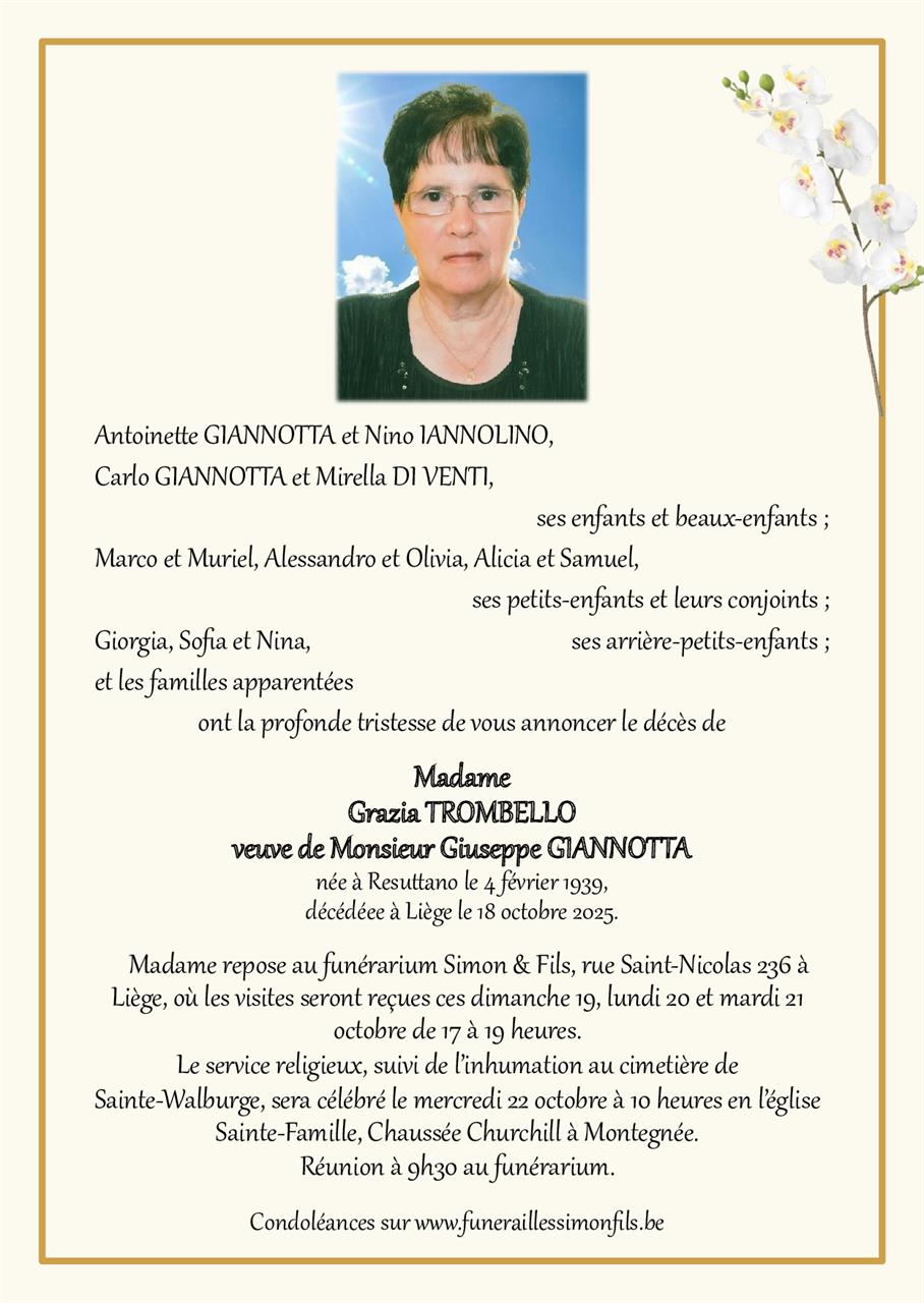 Veuve de Monsieur Giuseppe GIANNOTTA
