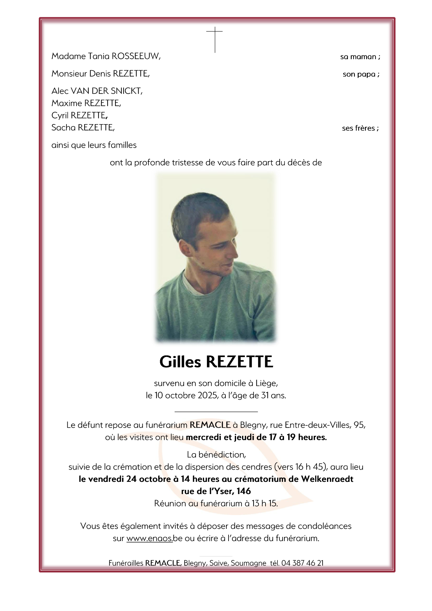 Décédé à Liège (4000) le vendredi 10 octobre 2025 à l'âge de 31 ans