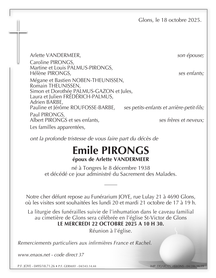 Décédé à Tongeren (3700) le samedi 18 octobre 2025 à l'âge de 86 ans