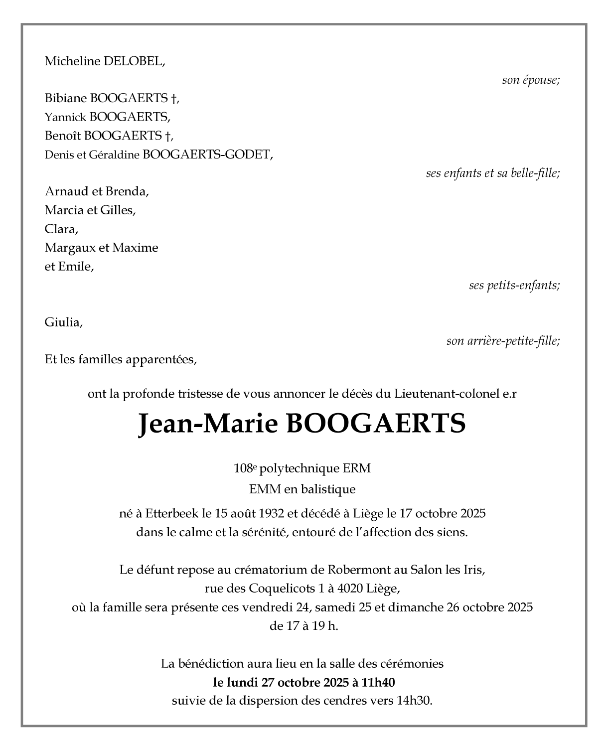 Décédé à Liège (4000) le vendredi 17 octobre 2025 à l'âge de 93 ans