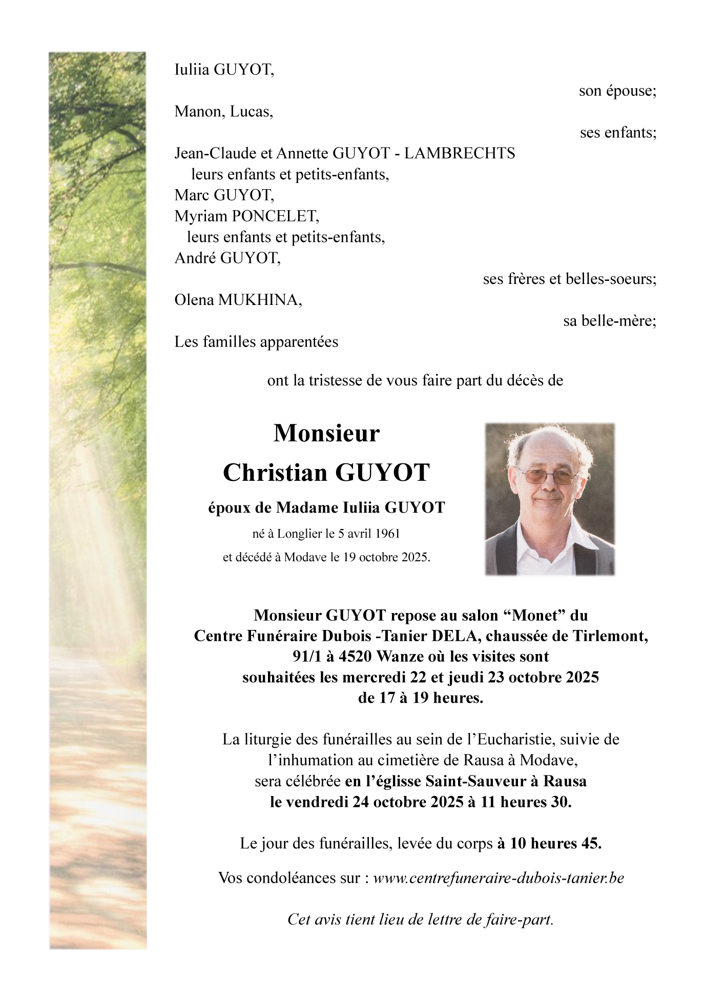 Décédé à Modave (4577) le dimanche 19 octobre 2025 à l'âge de 64 ans