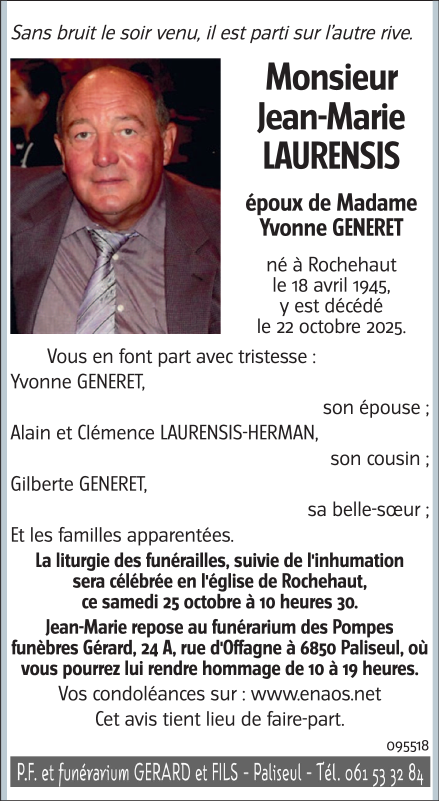 Décédé à Rochehaut (6830) le jeudi 23 octobre 2025 à l'âge de 80 ans