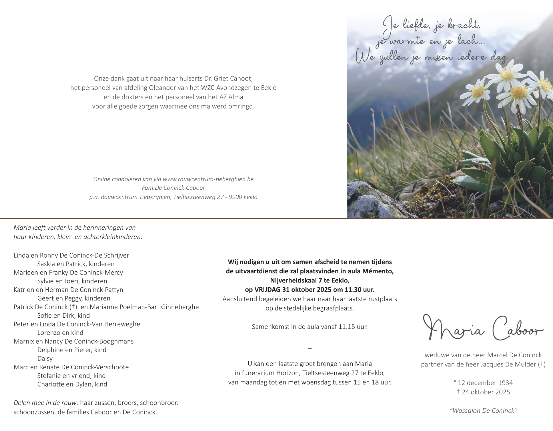Overleden te Eeklo (9900) op vrijdag 24 oktober 2025 op 90-jarige leeftijd