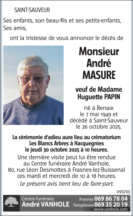 Décédé à Saint-Sauveur (7912) le dimanche 26 octobre 2025 à l'âge de 76 ans