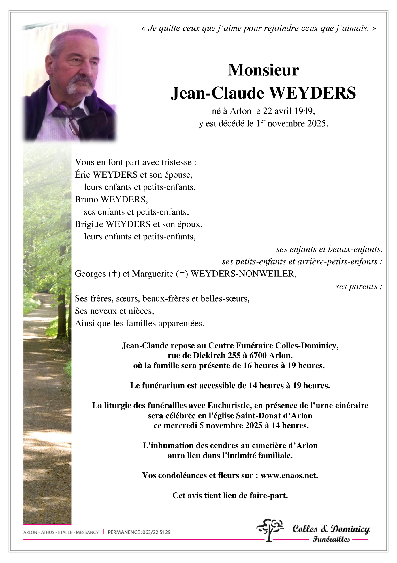 Fallecido en Arlon (6700) el sábado, 1 de noviembre de 2025 a la edad de 76 años