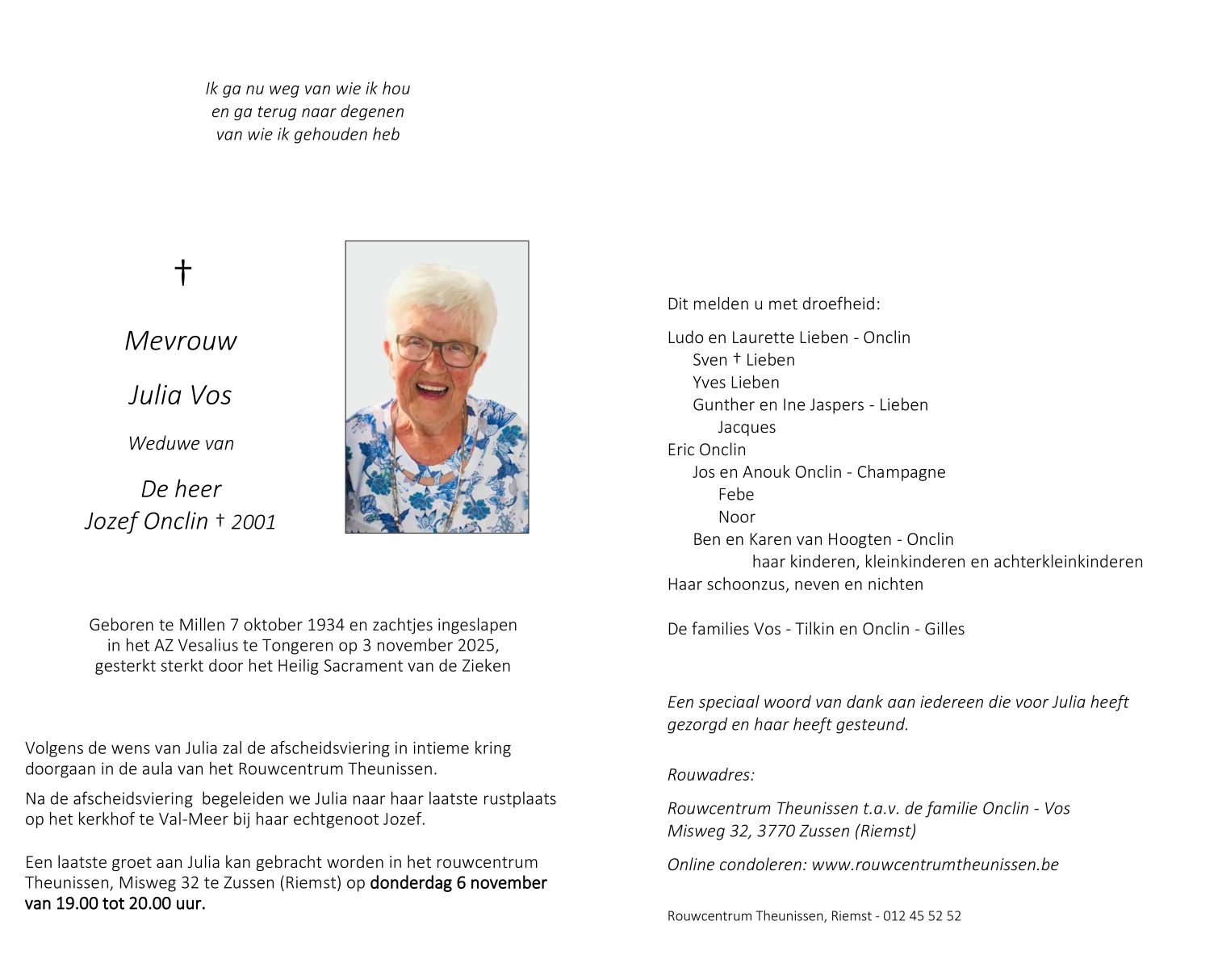 Died in Tongeren (3700) on 03 November 2025 at the age of 91 years