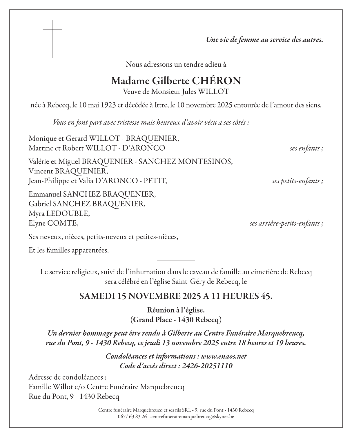 Décédée à Ittre (1460) le lundi 10 novembre 2025 à l'âge de 102 ans