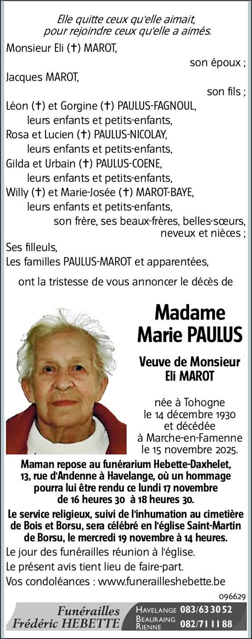 Overleden te Marche-en-Famenne (6900) op zaterdag 15 november 2025 op 94-jarige leeftijd