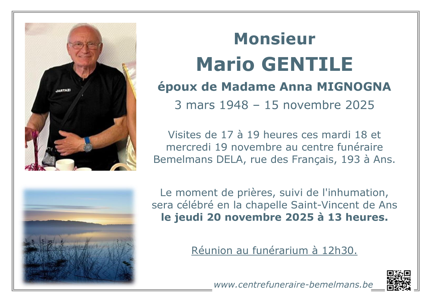 Décédé à Liège (4000) le samedi 15 novembre 2025 à l'âge de 77 ans
