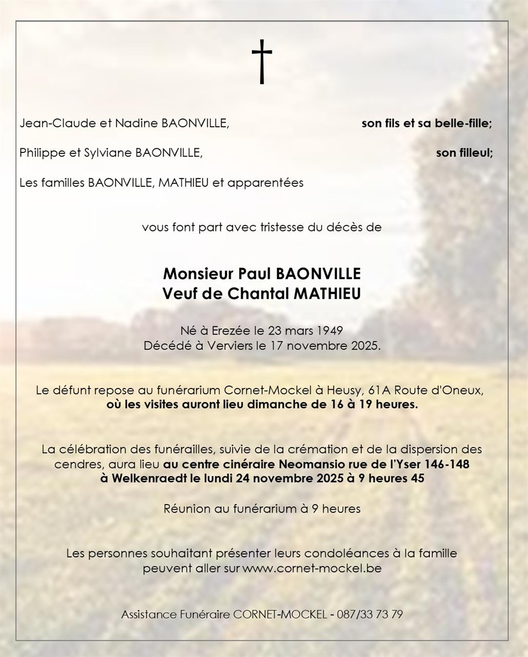 Décédé à Verviers (4800) le lundi 17 novembre 2025 à l'âge de 76 ans