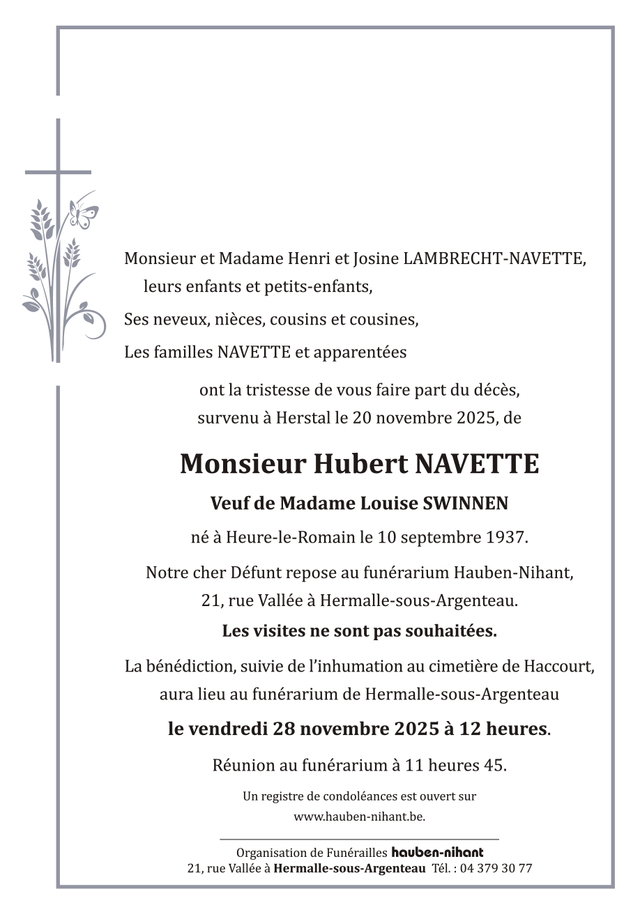 Décédé à Herstal (4040) le jeudi 20 novembre 2025 à l'âge de 88 ans