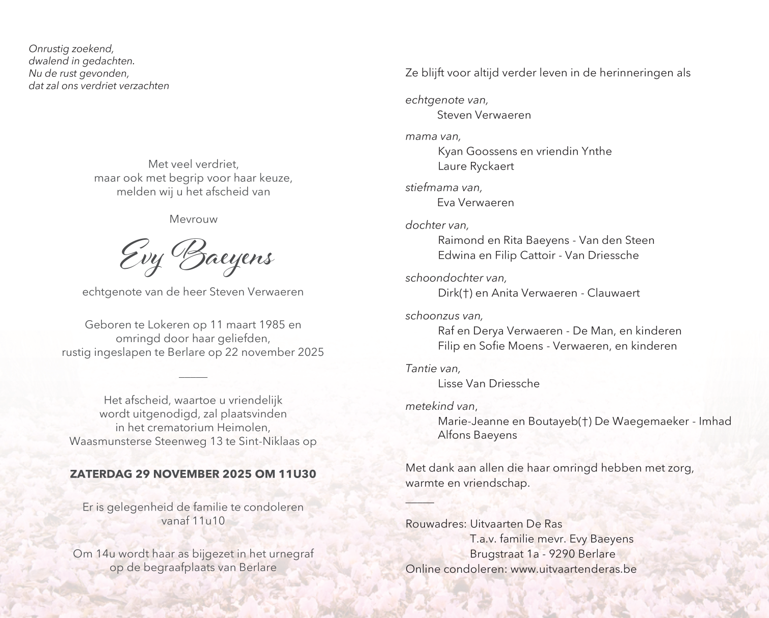 Décédé à Berlare (9290) le samedi 22 novembre 2025 à l'âge de 40 ans