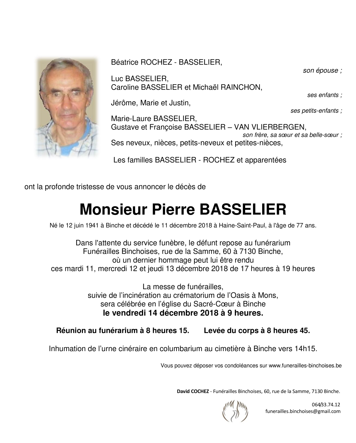 Overleden te Haine-Saint-Paul (7100) op dinsdag 11 december 2018 op 77-jarige leeftijd