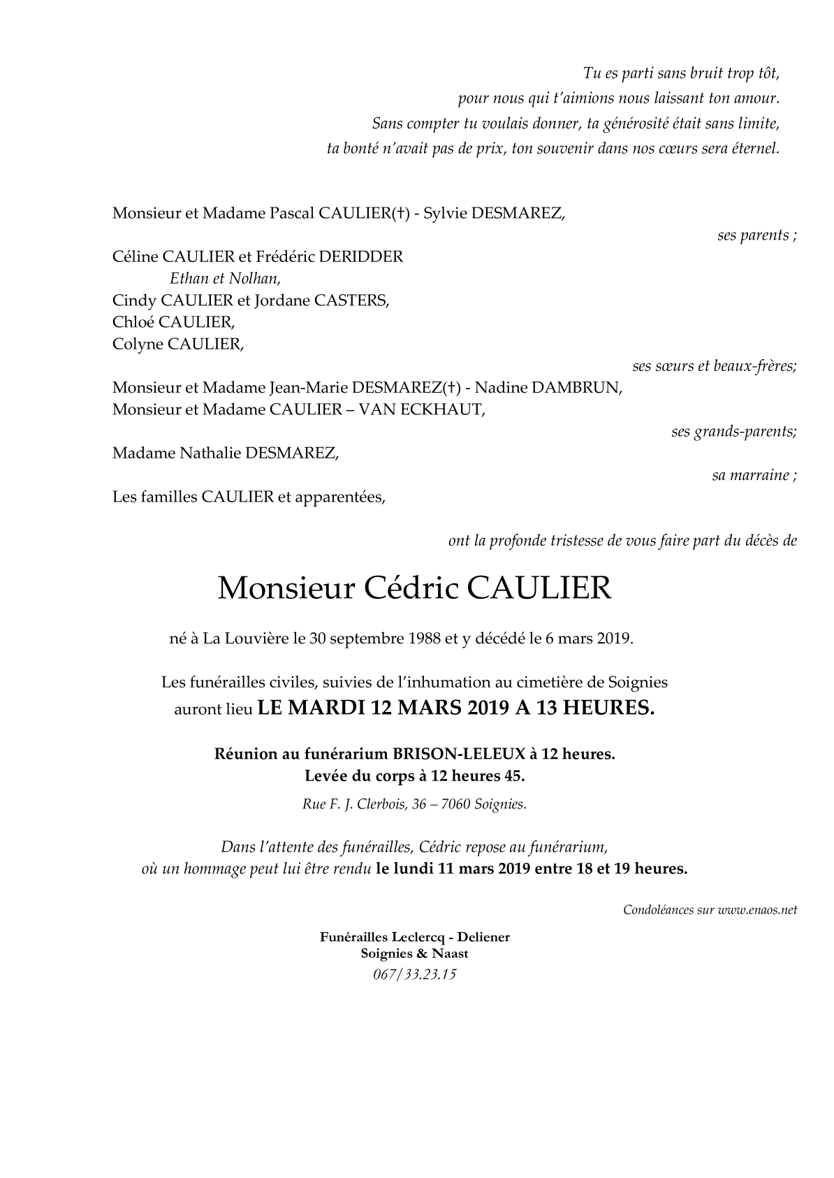 Overleden te Haine-Saint-Paul (7100) op woensdag 6 maart 2019 op 30-jarige leeftijd