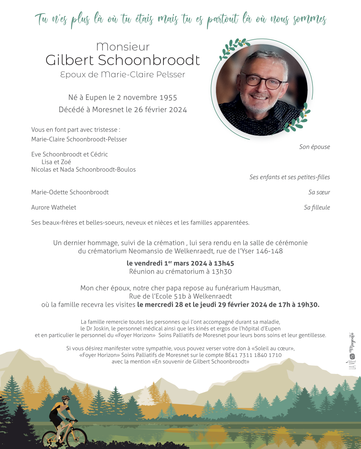 Fallecido en Moresnet (4850) el lunes, 26 de febrero de 2024 a la edad de 68 años