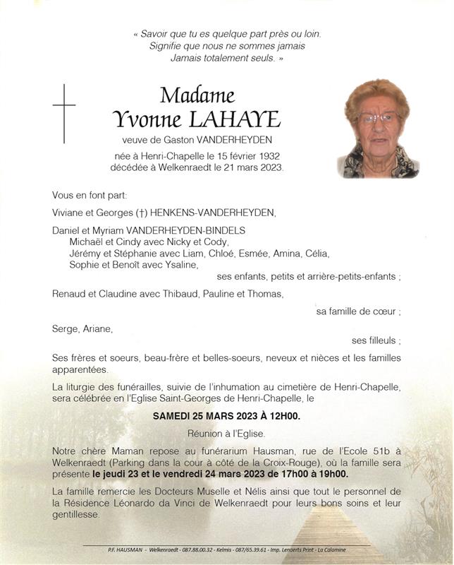 Madame Yvonne LAHAYE