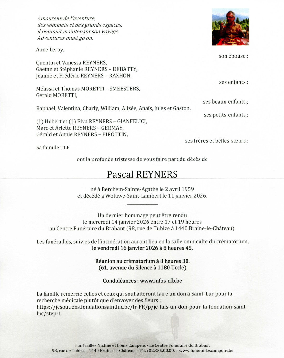 Décédé à Woluwe-Saint-Lambert (1200) le dimanche 11 janvier 2026 à l'âge de 66 ans