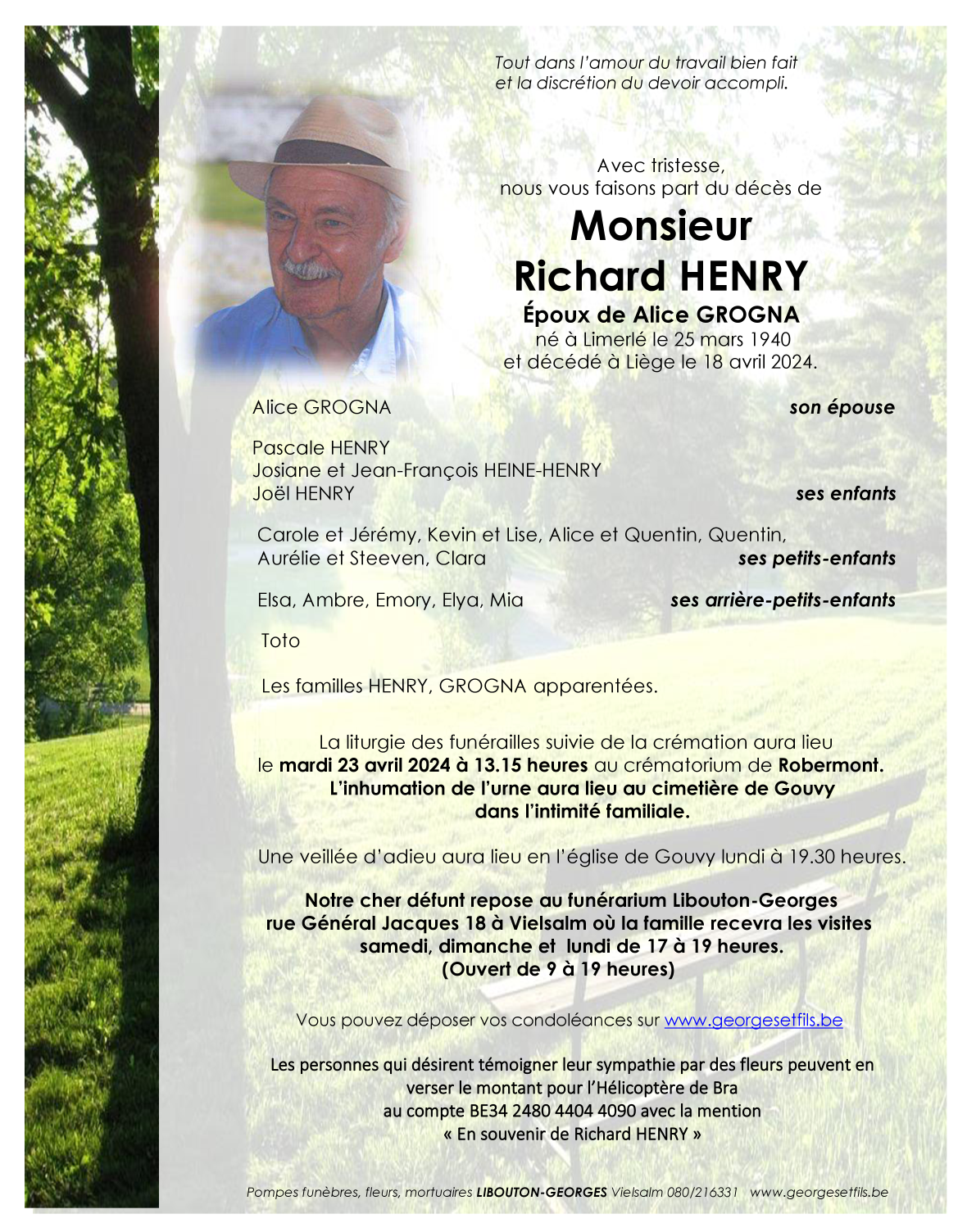 Décédé à Liège (4000) le jeudi 18 avril 2024 à l'âge de 84 ans