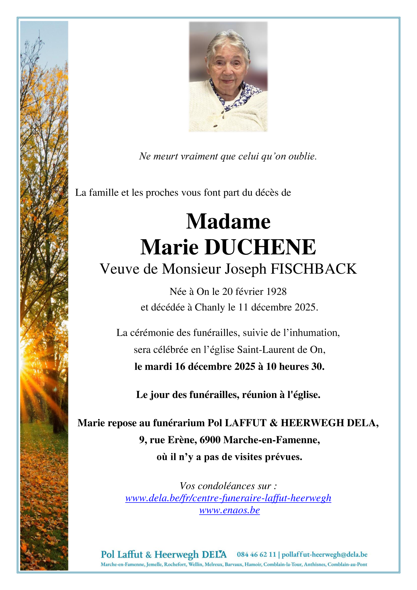 Décédée à Chanly (6921) le jeudi 11 décembre 2025 à l'âge de 97 ans
