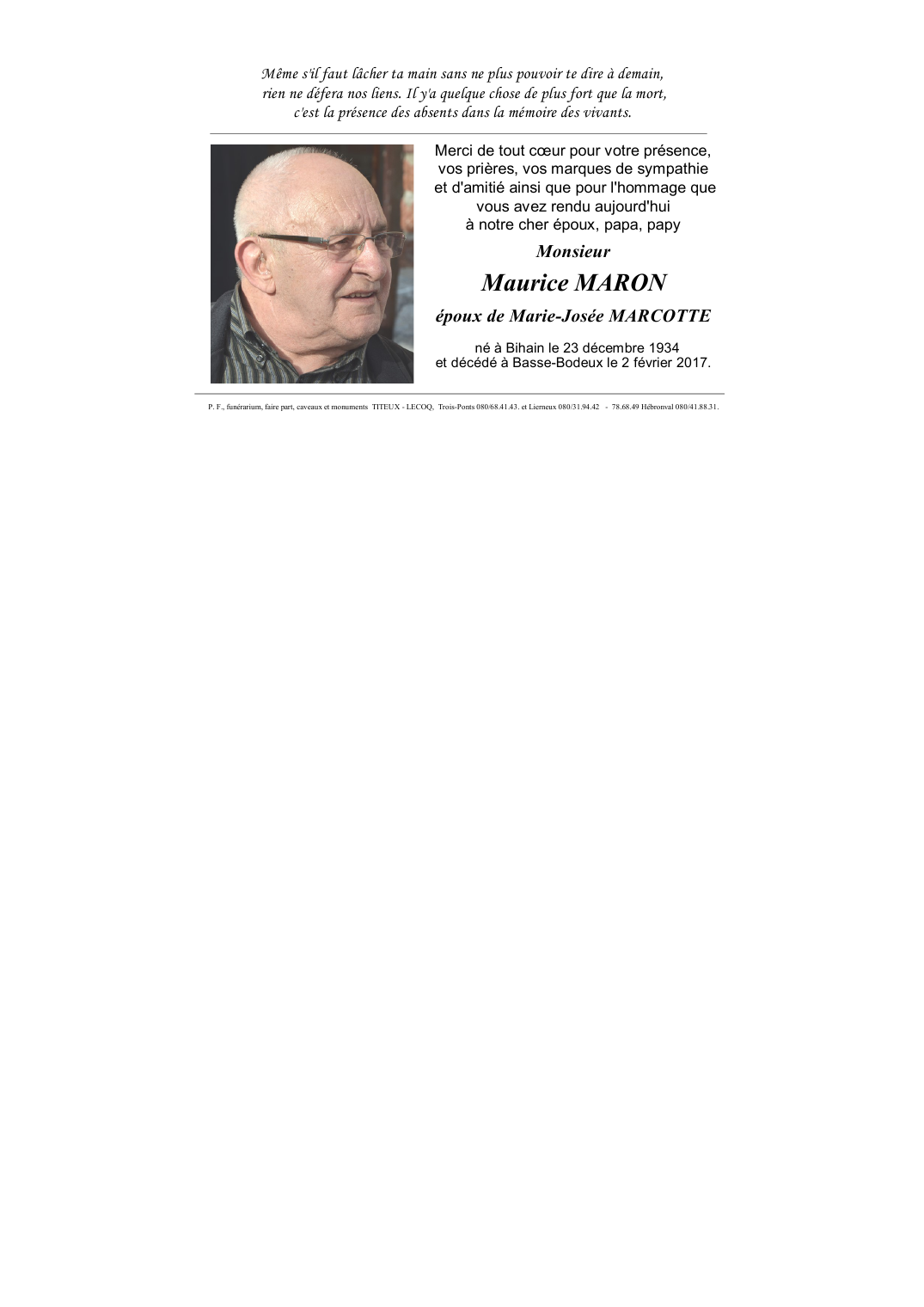 Fallecido en Basse-Bodeux (4983) el jueves, 2 de febrero de 2017 a la edad de 82 años