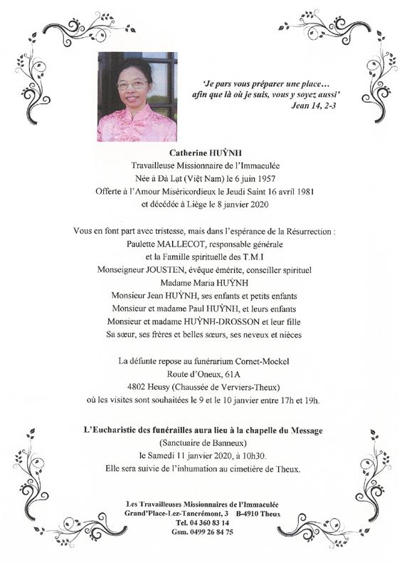 Décédée à Liège (4000) le mercredi 8 janvier 2020 à l'âge de 62 ans