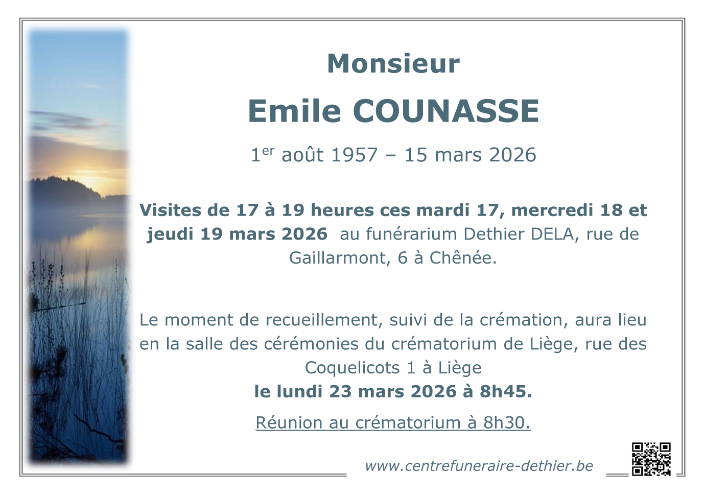 Died in Liège (4000) on 15 March 2026 at the age of 68 years