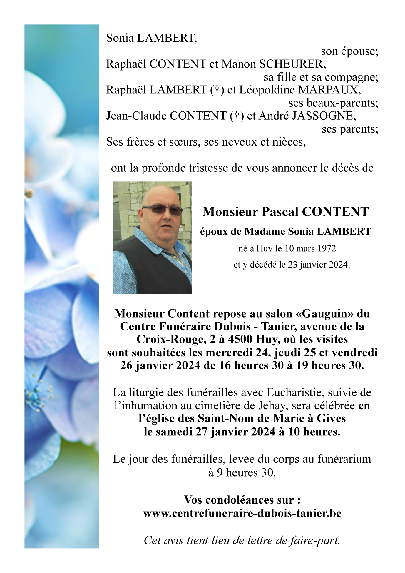 Fallecido en Huy (4500) el martes, 23 de enero de 2024 a la edad de 51 años