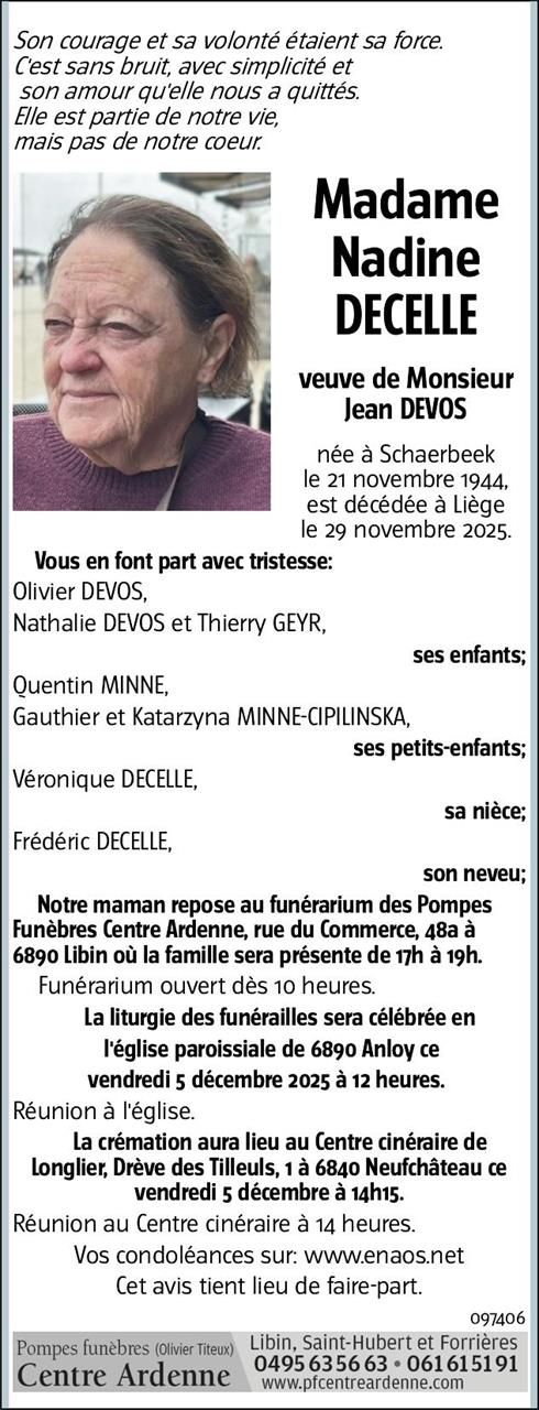 Décédée à Liège (4000) le samedi 29 novembre 2025 à l'âge de 81 ans