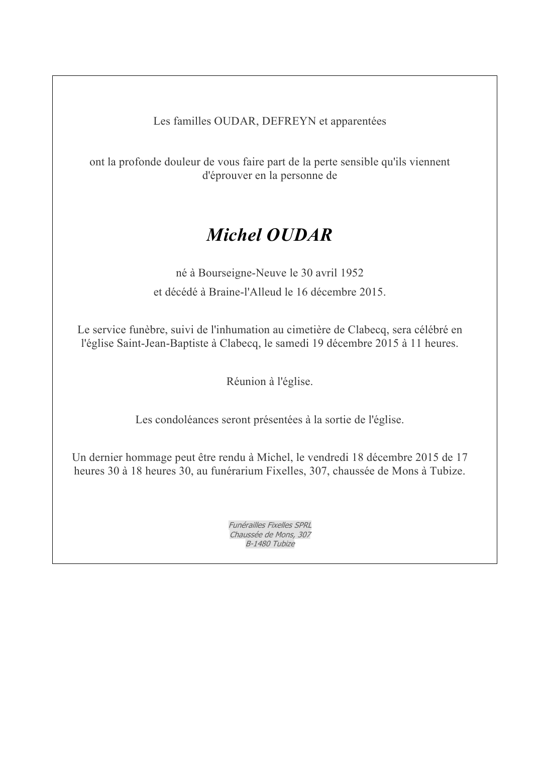 Overleden te Braine-l'Alleud (1420) op woensdag 16 december 2015 op 63-jarige leeftijd