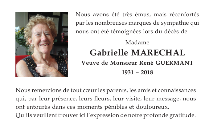 Décédée à Nandrin (4550) le mardi 1 mai 2018 à l'âge de 86 ans