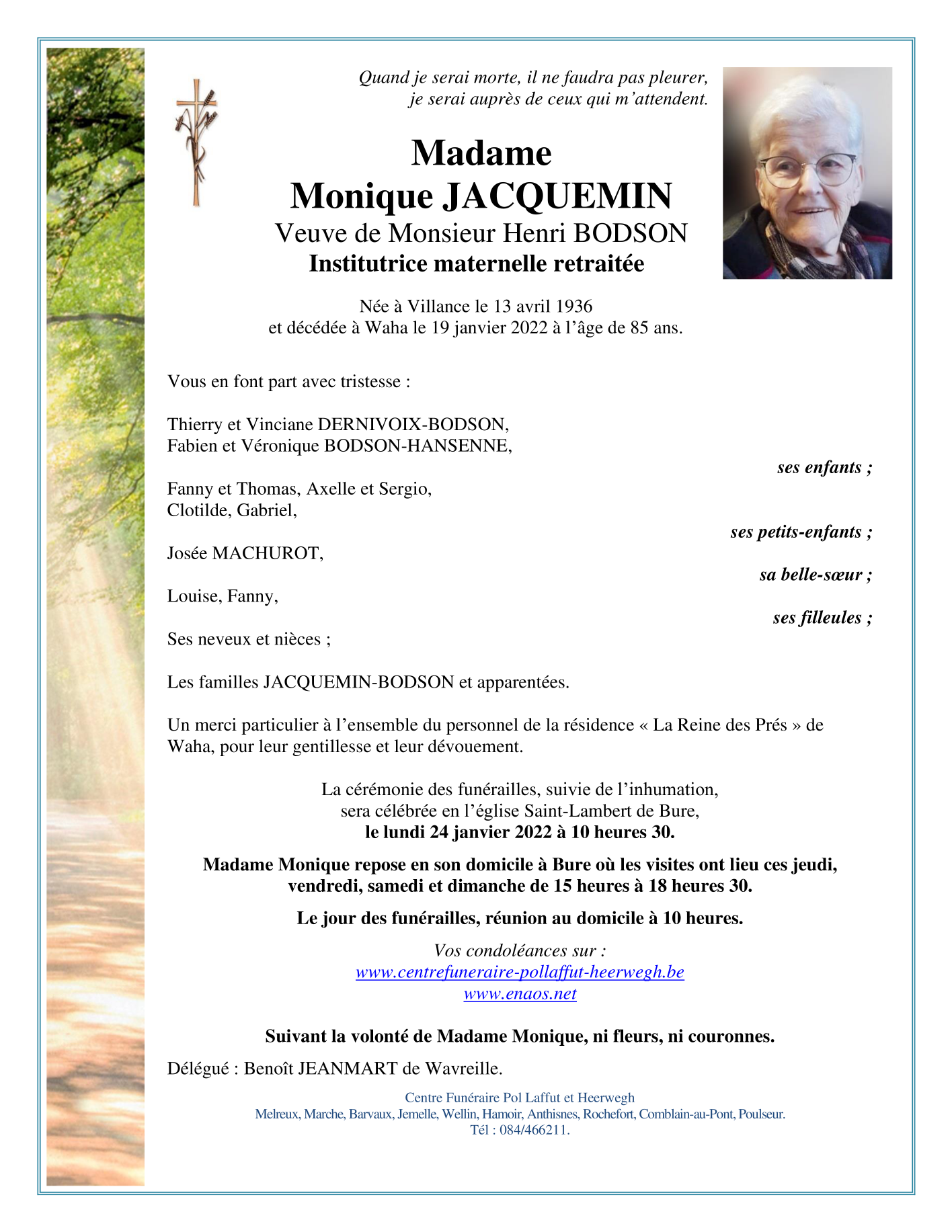 Overleden te Waha (6900) op woensdag 19 januari 2022 op 85-jarige leeftijd