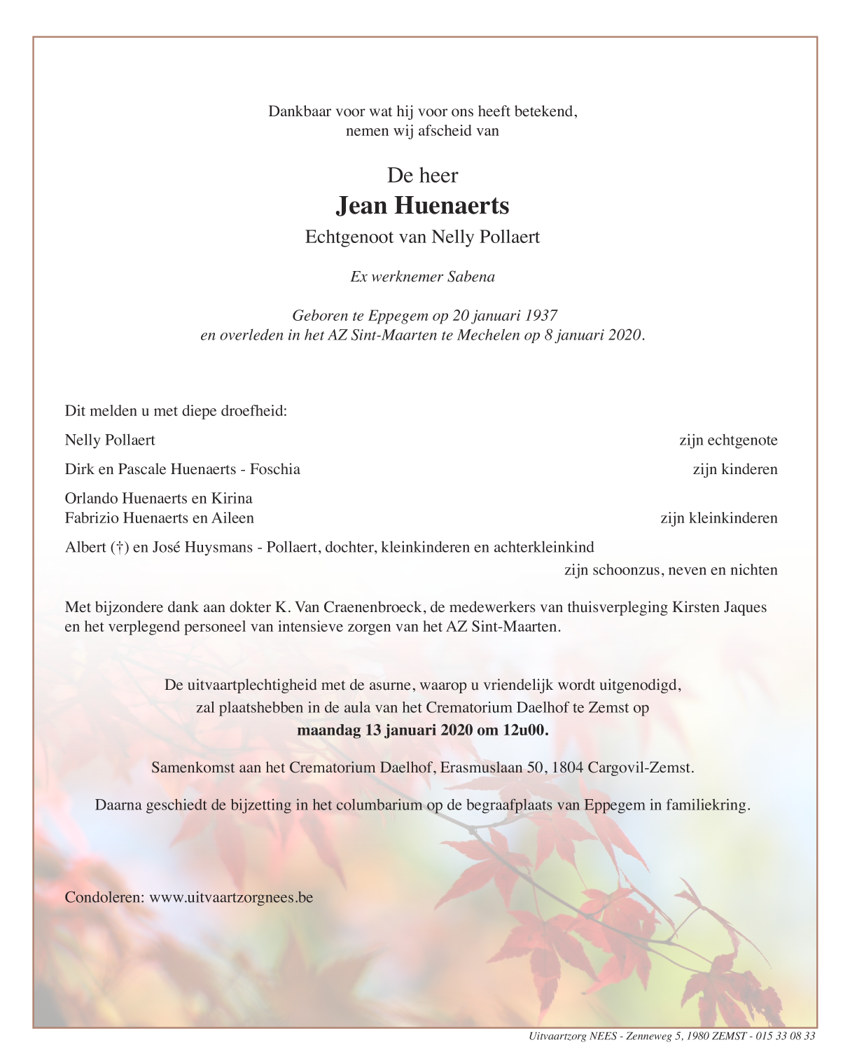 De heer Jean Huenaerts