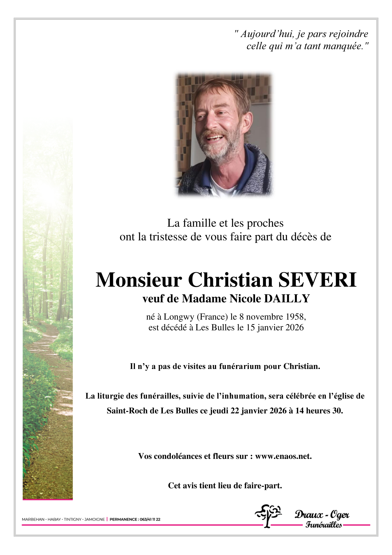 Overleden te Les Bulles (6811) op maandag 19 januari 2026 op 67-jarige leeftijd