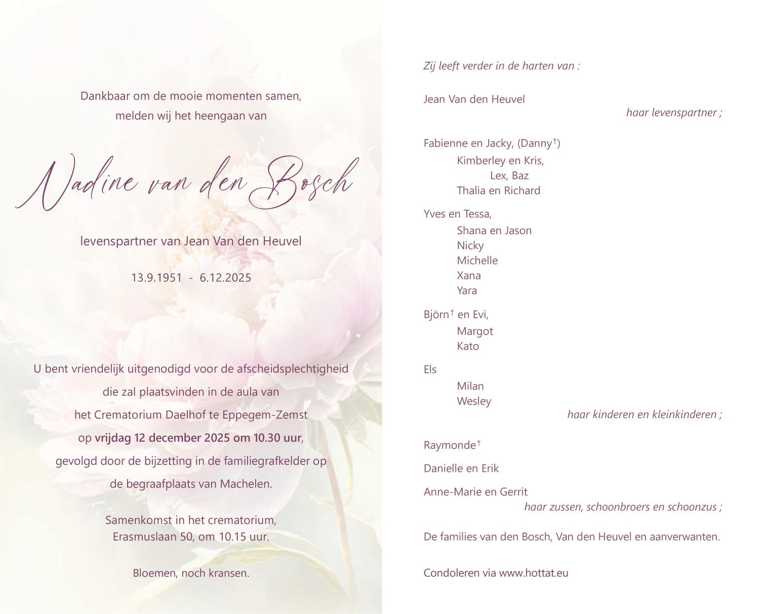 Décédée à Vilvoorde (1800) le samedi 6 décembre 2025 à l'âge de 74 ans