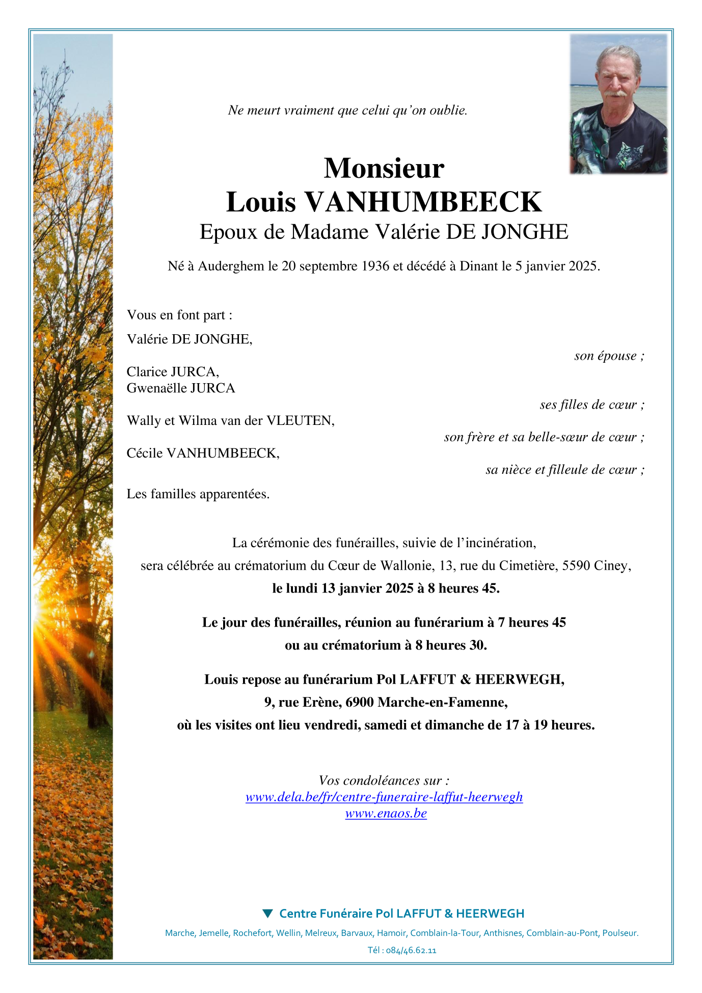 Décédé à Dinant (5500) le dimanche 5 janvier 2025 à l'âge de 88 ans