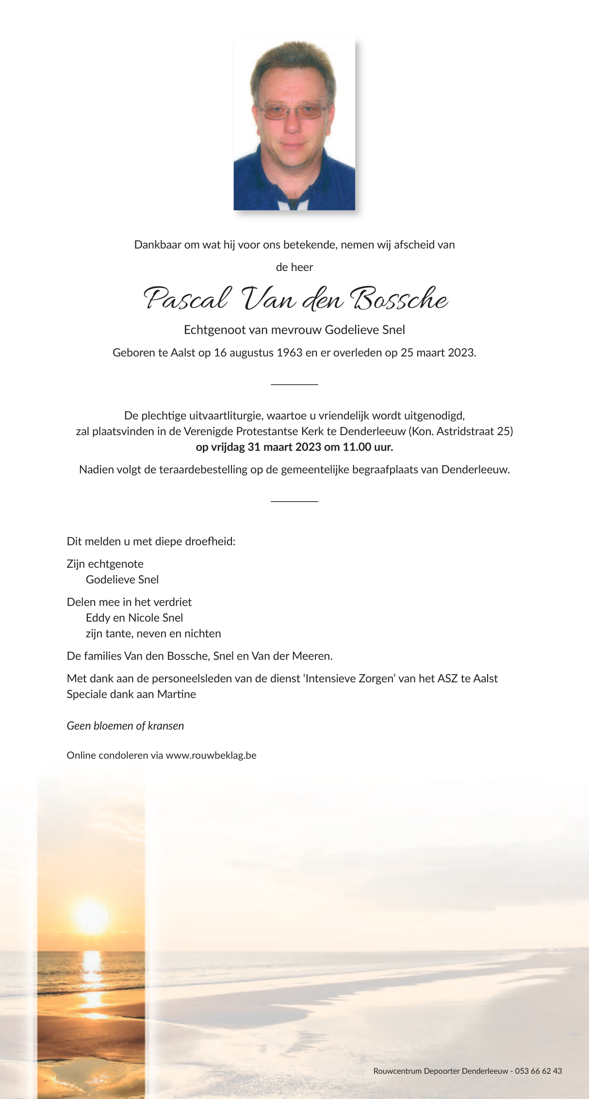 Overleden te Aalst (9300) op zaterdag 25 maart 2023 op 59-jarige leeftijd